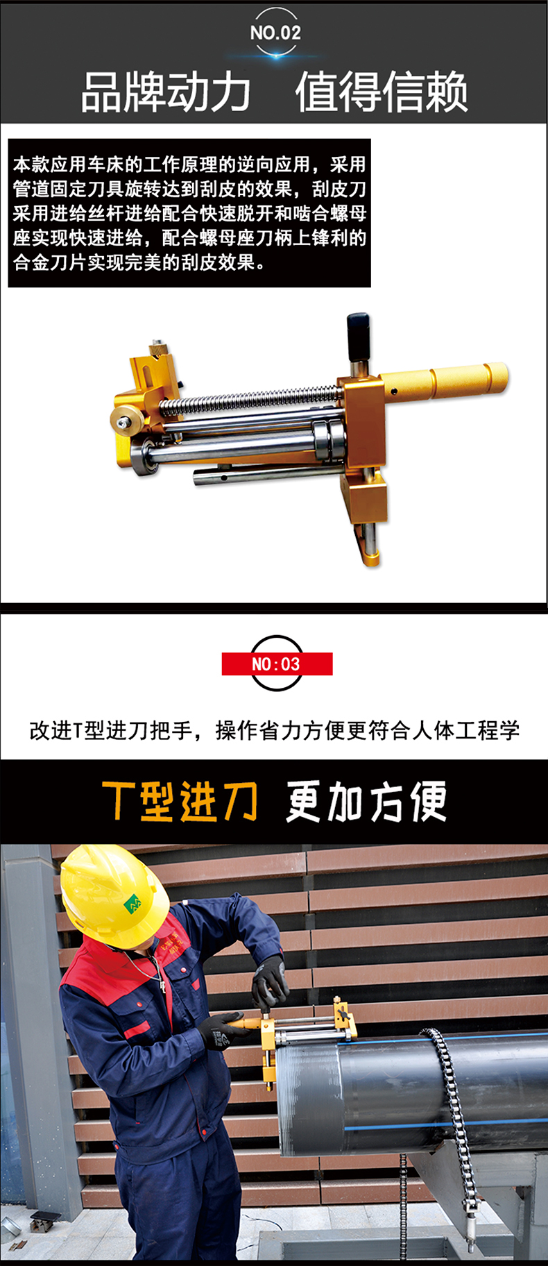 功能:PE管、PVC管、PPR管氧化層刮皮工具