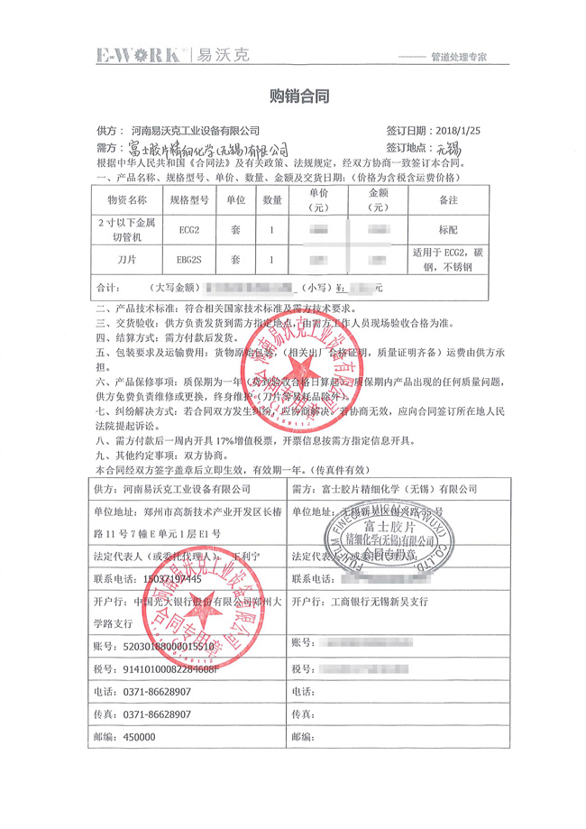 2018年富士膠片精細化學(xué)(無錫)有限公司合作業(yè)績