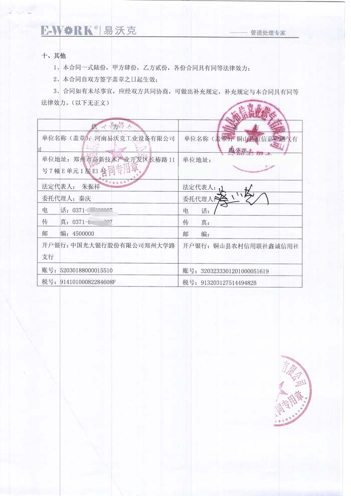 2017年銅山縣恒信嘉業(yè)燃氣有限公司合作業(yè)績