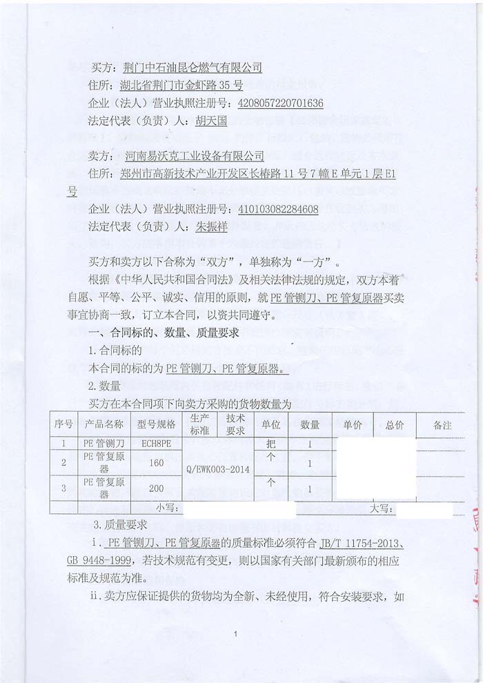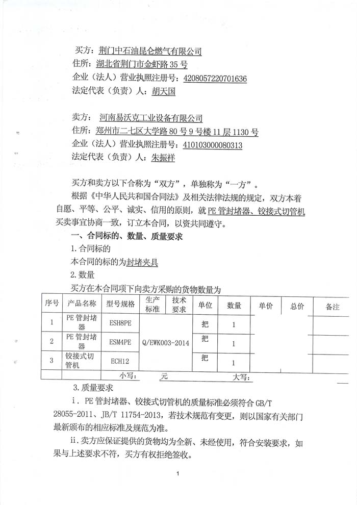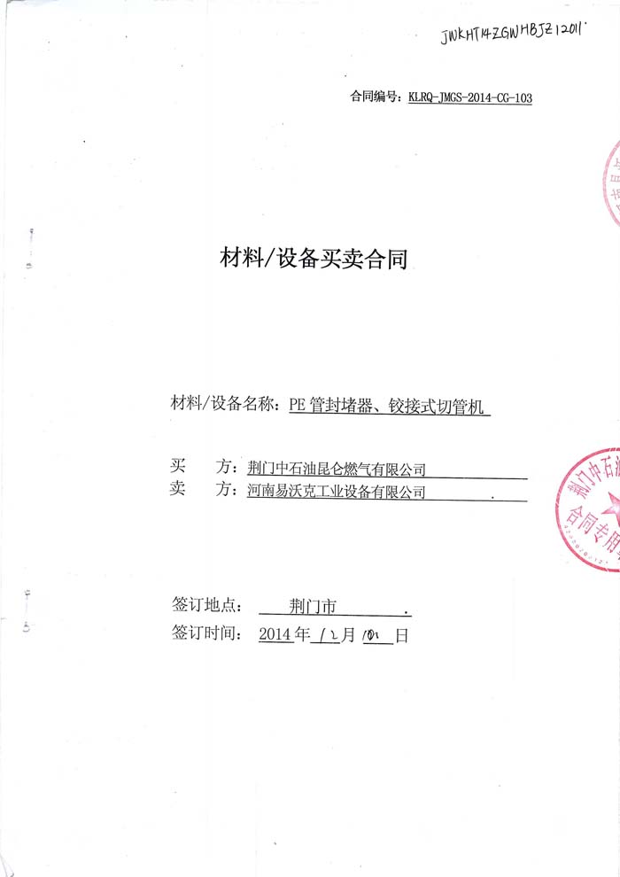 2015年湖北荊門中石油昆侖燃氣有限公司合作業(yè)績