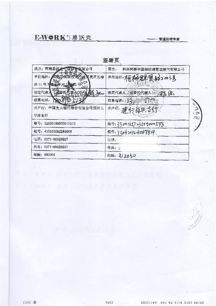 2015年浙江紹興柯橋中國(guó)輕紡城管道燃?xì)庥邢薰竞献鳂I(yè)績(jī)