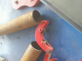 其次進(jìn)入試用的是我司另一款金屬管切割工具:鉸接式切管機(jī)ECH4,本系列產(chǎn)品只需更換刀片便可切割碳鋼、不銹鋼、鑄鐵、球墨鑄鐵等不同材質(zhì)金屬管件,本次操作切割人員為上饒大通燃?xì)夤緭屝揸?duì)伍的一名技術(shù)員工,簡(jiǎn)單的講解了一下操作規(guī)范,便在100mm鍍鋅管件上開(kāi)始切割, 一次使用時(shí)間為2分46秒完成切割,我們可以看到在管道切割過(guò)程中不產(chǎn)生任何的碎屑和火花,切口特別的平整。