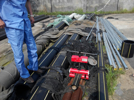 先,進(jìn)入產(chǎn)品試用的是我司與中國(guó)金屬研究所聯(lián)合研發(fā)生產(chǎn)的PE管鍘刀系列產(chǎn)品之一的ECH4PE,該鍘刀結(jié)構(gòu)設(shè)計(jì)合理,簡(jiǎn)單。具有強(qiáng)度大,延展性強(qiáng)的技術(shù)優(yōu)勢(shì),在受力的情況下不易變形,刀片采用高強(qiáng)度工具鋼,加上特殊熱處理方式,使刀片的強(qiáng)度和韌度達(dá)到平衡,切割快速、經(jīng)久耐磨。在此次試用過(guò)程中該鍘刀充分展示了自身的各項(xiàng)優(yōu)勢(shì),在現(xiàn)場(chǎng)準(zhǔn)備的100mm PE管徑上切割僅用時(shí)25秒,切口平整,無(wú)碎屑,無(wú)變形,對(duì)管道后期的處理提供的很好的作業(yè)條件。引起在場(chǎng)的各位領(lǐng)導(dǎo)一致好評(píng)!