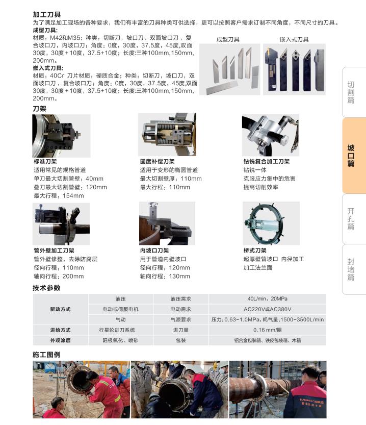 ◎ 固定軌道:自主研發(fā)全新導向固定軌道,可以滿足不同空間位置的導向及切割坡口。