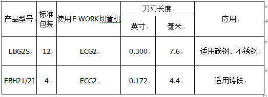 2寸以下金屬切管機ECG2是易沃克E-WORK生產的一款可切割鑄鐵、碳鋼、不銹鋼管的冷切割工具。本機采用了彈簧導向架使得四個刀片走一條線,切割口筆直。薄而鋒利的刀片由高強的工具鋼材制成,使切割省力和快速,是目前市場上切割速度較快快的管道冷切割工具。由于刀片鋒利,使得切割時更省力,所以切管機的手柄可設計得更短,十分適合狹小空間操作。